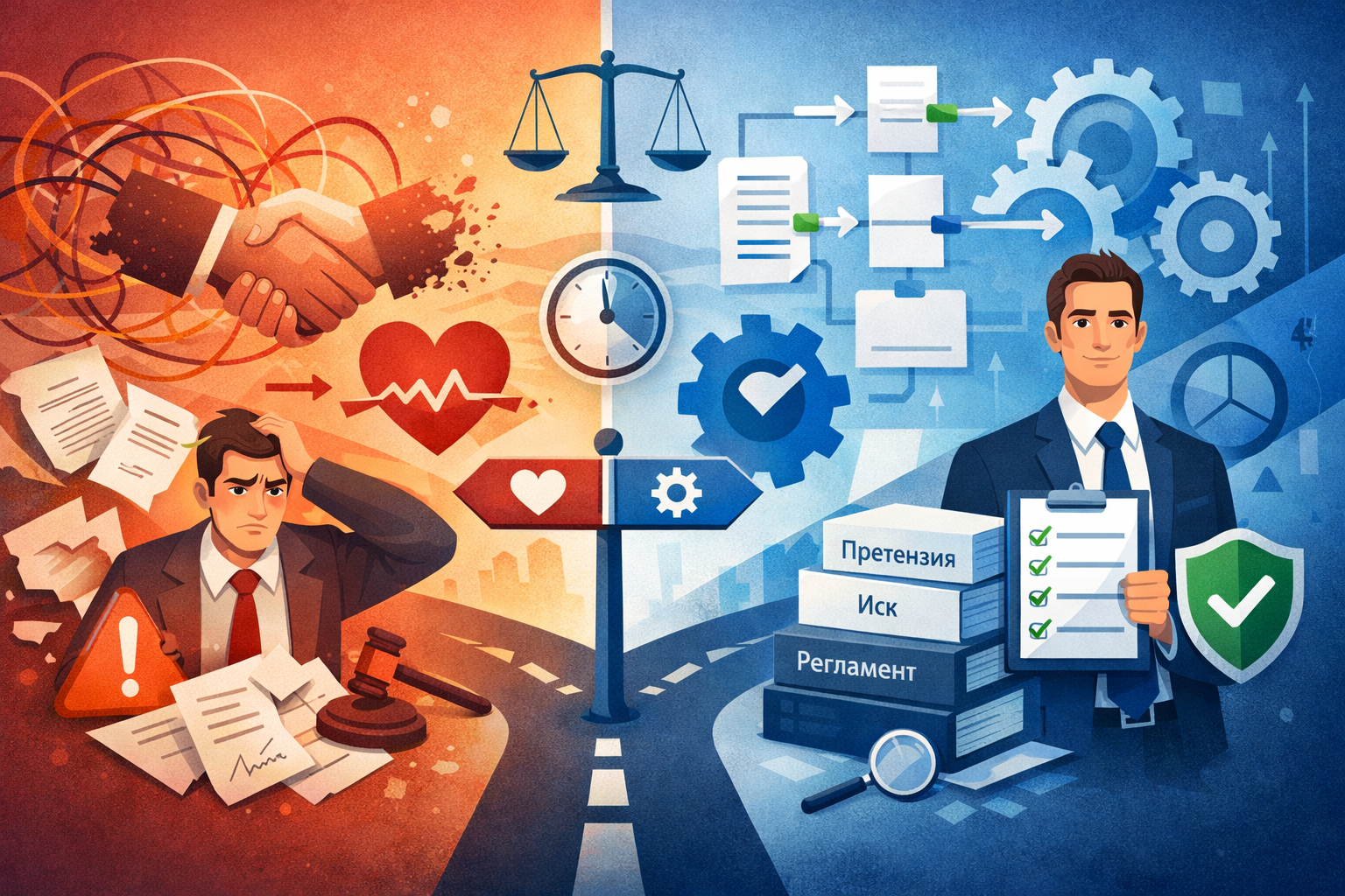 - Нет оплаты после претензии → иск. Думаем только о деле. Личное на потом.